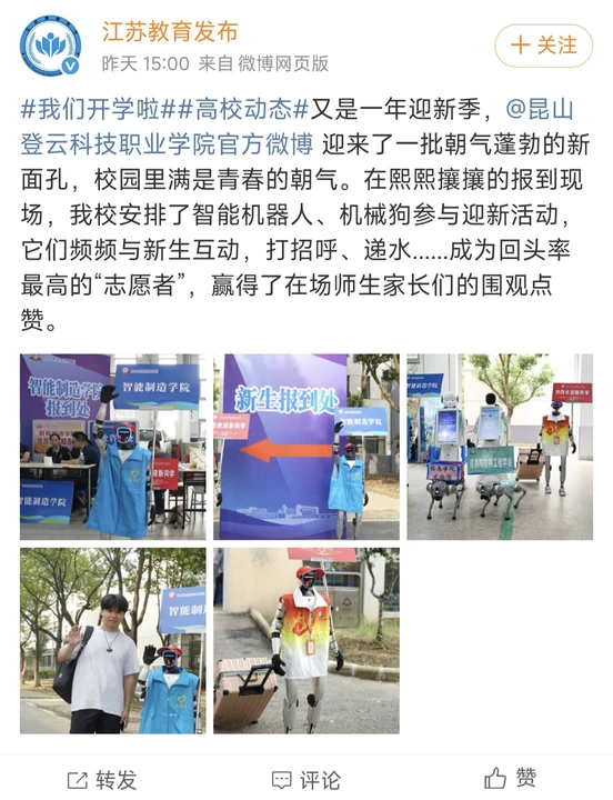 江苏教育发布微博报道我校机器人“硬核”迎新