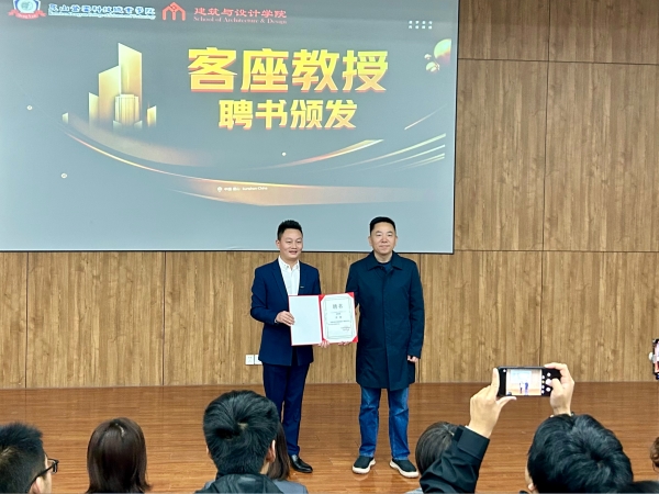 活动伊始,宋承裕院长为许总经理颁发“客座教授”聘书,并向在座师生强调了深化产教融合、推动校企协同育人的重要意义。他指出,面对建筑装饰行业绿色化、智能化、个性化的发展趋势,学院将持续推进“校企共育、资源共享”的教学新生态建设,进一步拓展课程共建、项目共研、师资共培等方面的合作深度,共同培养具备专业能力、创新精神与实践素养的高素质设计人才。