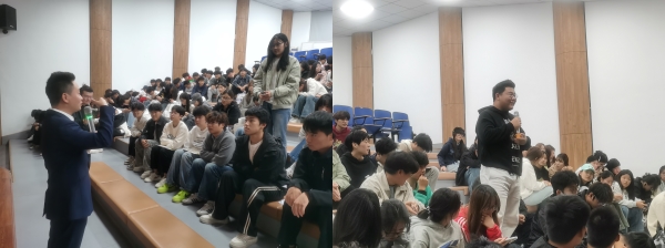 随后,许总以“扎根家装行业,预见装修行业的黄金未来”为题开展专题讲座。结合企业实战案例与行业趋势,系统解析建筑装饰行业的现状与发展方向,并就职业规划、技能提升、实习就业等问题,与在场学生进行了深入交流。现场互动积极,反响热烈。